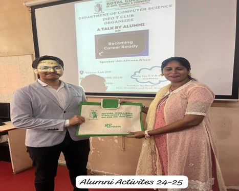 The Department of Computer Science at Royal College of Arts, Science and Commerce (Autonomous) actively engaged in academic enrichment, research, industry exposure and community outreach during the academic year 2024–2025, aligning its initiatives with holistic learning, innovation and social responsibility.
